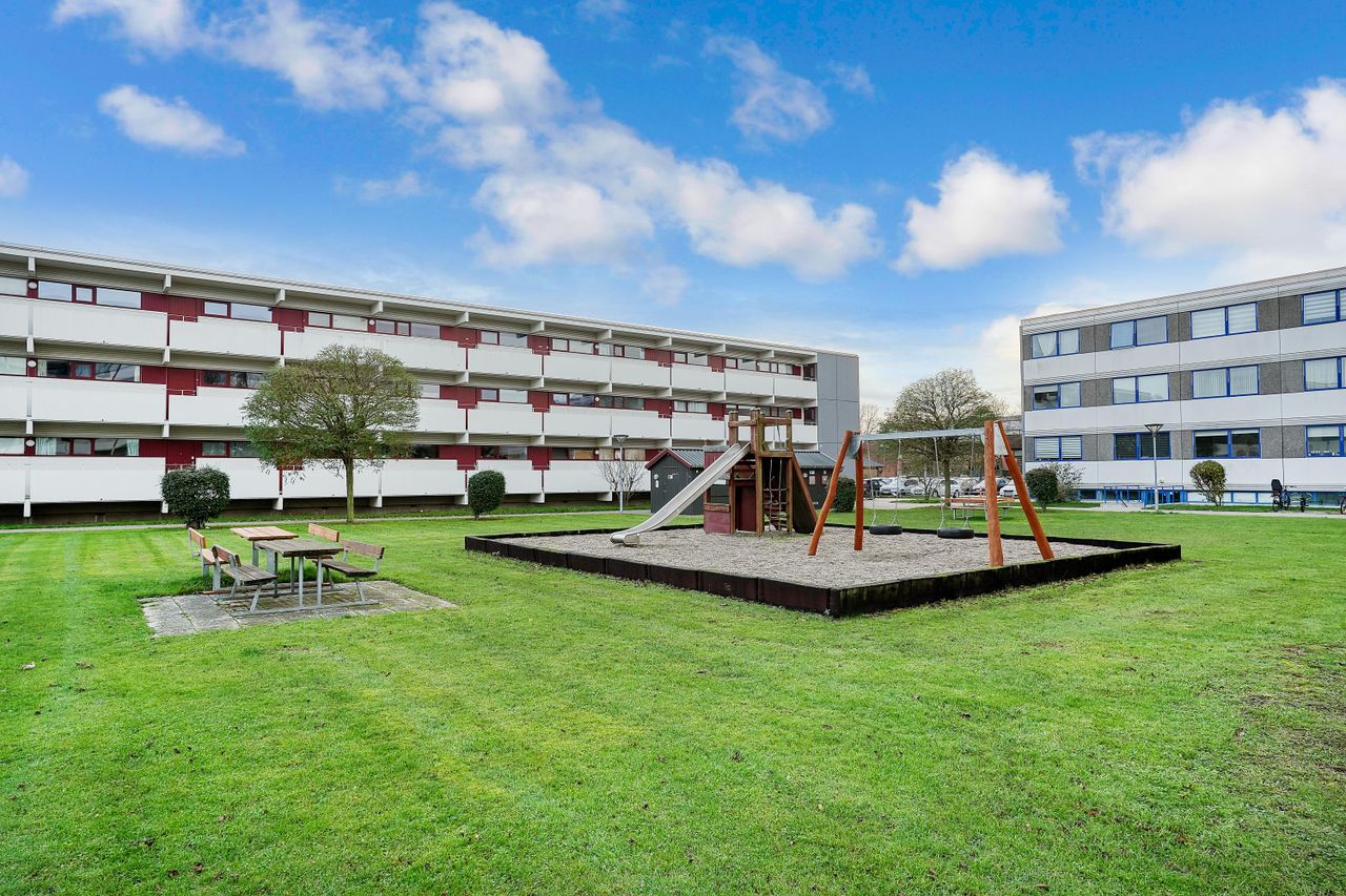 Ejendommen er veldrevet og alle fællesarealer, ude som inde, fremstår pæne. Der hører et ekstra stort kælderrum til lejligheden og her er både gode parkeringsforhold, legeplads og store, grønne arealer.