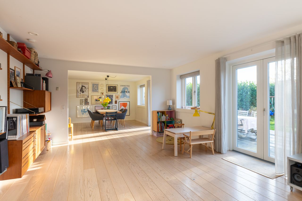 Huset er opført i en nutidig stil med fokus på funktionalitet og lyse og store rum, der skaber de perfekte rammer for familien. Her får du en indflytningsklar bolig med gennemtænkte detaljer og en beliggenhed, der kombinerer bylivets nærhed med roen fra et hyggeligt kvarter.