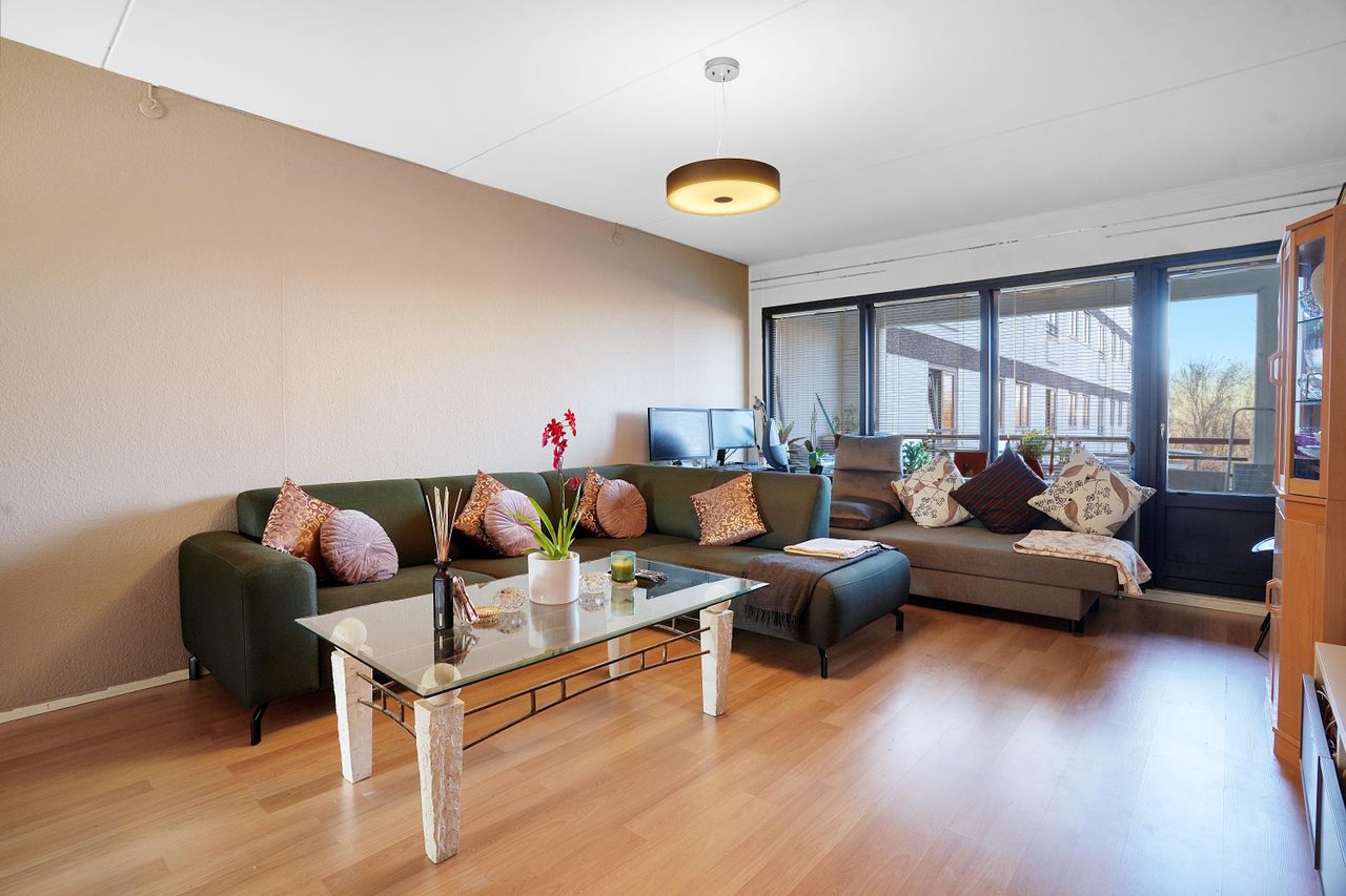 Der er to gedigne værelser samt et lyst og indbydende alrum med gennemstrømmende lys, i køkkenet fra øst og i stuen fra vest, hvor vinduespartier og terrassedør på hele endevæggen fører ud til en stor overdækket og i siderne afskærmet altan. Her suppleres boligen med et super hyggeligt uderum, hvor I får plads til både cafesæt og loungehjørne.